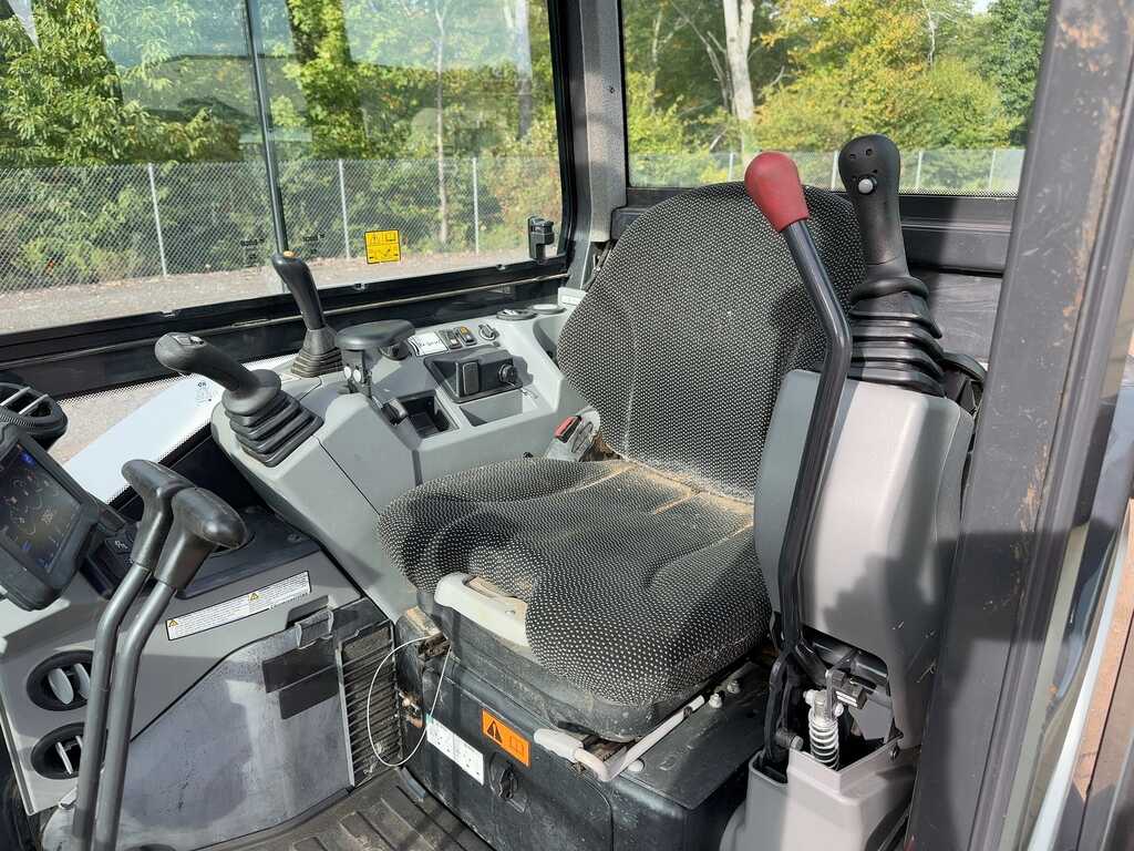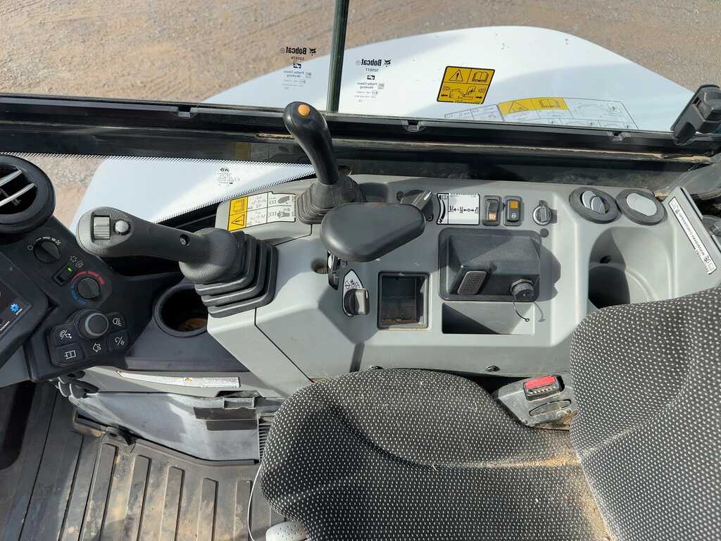 4 CYL BOBCAT TURBO DIESEL, CAB WITH HEAT, A/C, STEREO, AUTO IDLE, 2 SPEED TRAVEL, BACKFILL BLADE, SWING BOOM, AUX HYD, HYD THUMB, 6′ 4″ STICK, COUPLER, BUCKET WITH TEETH, METER READS 900 HOURS, S/N B4GR14455