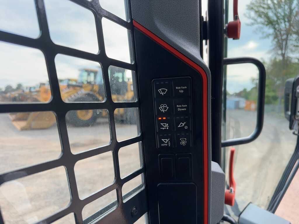 4 CYL BOBCAT TURBO DIESEL, CAB WITH HEAT, A/C, STEREO, KEYLESS START, 2 SPEED TRAVEL, REARVIEW CAMERA, SELECTABLE JOYSTICK CONTROLS, HIGH FLOW AUX HYD, AUX ELECTRICAL CONNECTOR, HYD COUPLER, GP BUCKET, METER READS 102 HOURS, S/N B4CE37553